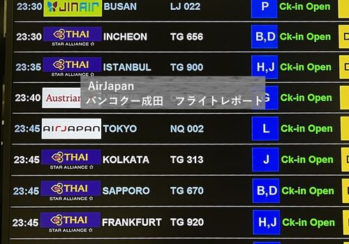 こんにちは。かーる1世です。 ANAの国際線 MCC(ミドル・コスト・キャリア=一般化した言葉なのかは不明です)であるAirJapanを利用して、バンコク・スワンナプーム国際空港から成田国際空港まで搭乗しました。 フライトとバンコク・スワンナプーム国際空港…